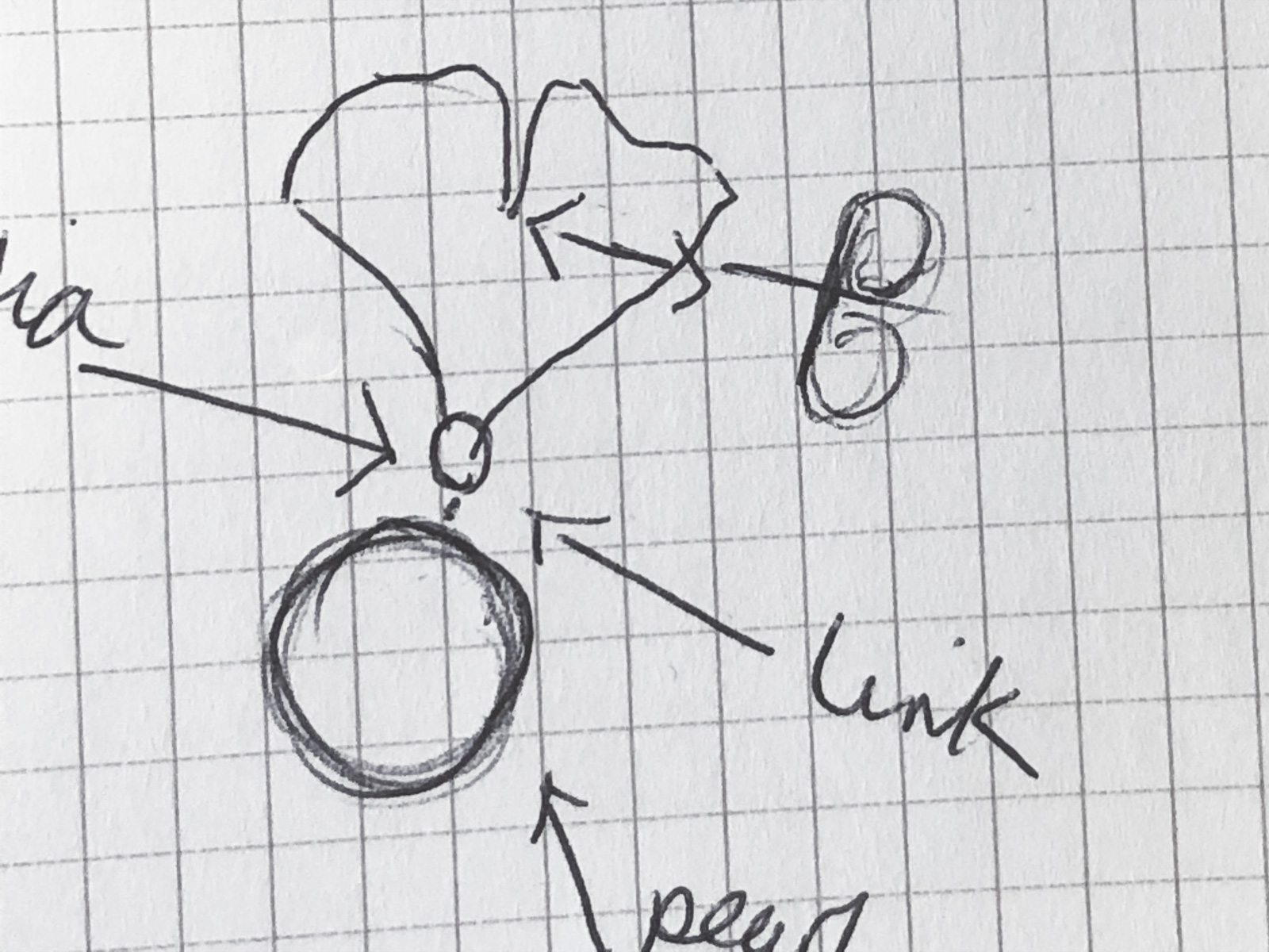 we half-drilled the pearls, attached a tiny link, set a glimmer of a diamond in the circle on the leaf, added pierced posts with friction nuts all done in 14k white gold. the leaf sits on her lobe, the pearl dangles from the base of the leaf.