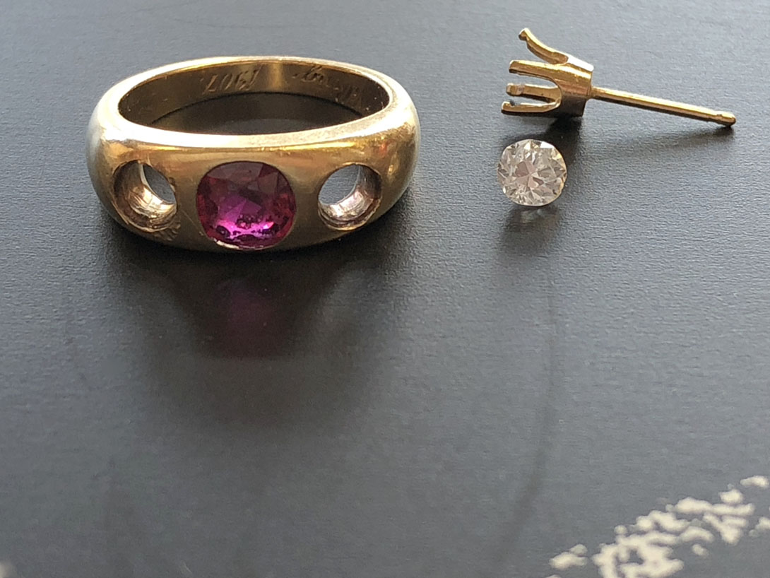 sometime back in the 1980s, the diamonds had been removed from the ring and set into earrings. now in 2019 we restored the diamonds back into the ring. full circle.