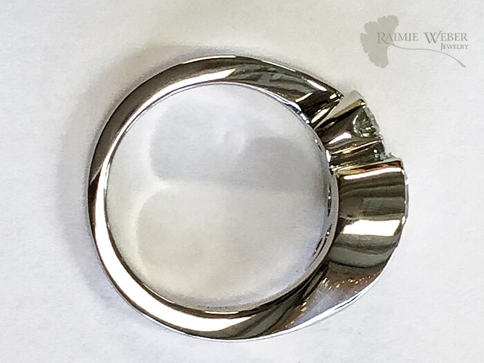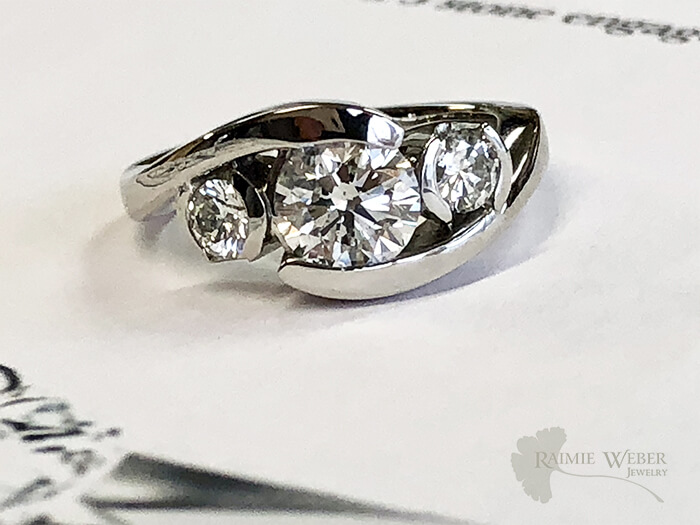 This client phoned in to the studio to make an appointment to look at my selection of engagement rings. He lives out of state but works locally, so he was able to come in during his lunch hour. It was a lovely meet and greet. As is my normal process, I asked about his intended to hear how he sees her. He began by telling me about himself. He’s an engineer, who understands and appreciates measurements and precision. But she is a bit softer, not so hard-edged. We began with the diamond, the center stone and highlight of the ring. I brought in three different diamonds, working within the established parameters for color and clarity. All of the diamonds had independent laboratory certification. This is a great way to verify carat weight, color and clarity. His eye went straight to one particular diamond, that was the stone that spoke to him. Once that was finalized, next it was on to the design of the ring itself. He sent along some images for us to use as inspiration. With a tweak here and a tweak there we were able to customize a final look just for him and his fiancé-to-be. Part of the design process included sending renderings and measurements, which, as an engineer he thoroughly enjoyed. Once the ring was complete he planned a romantic getaway to propose: a walk on the beach with a drop to one knee and… hooray, it was a resounding, “Yes!” I was thrilled to hear afterwards that she absolutely adored her new engagement ring!!!