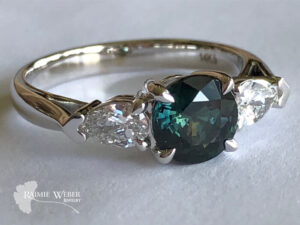 This client came to me for a very sweet project. She found me online and liked what she saw, which meant a great deal to me especially when I learned that she had experience working for a jewelry store. This  came in handy because she had a working knowledge of what might be possible for this. Her vision was a tree of life with one of the branches meant to commemorate one of life’s momentous events. In this case, it was her niece’s Bat Mitzvah. It was especially meaningful because this client had stones from the family that she wanted to incorporate. Her original sketches led me to the perfect solution. The end result was exactly as she had envisioned – truly a one of a kind piece. What a special way to mark the occasion.