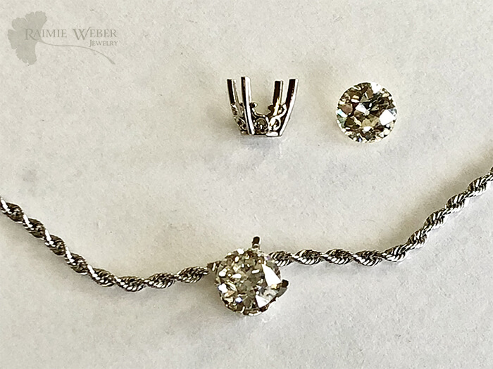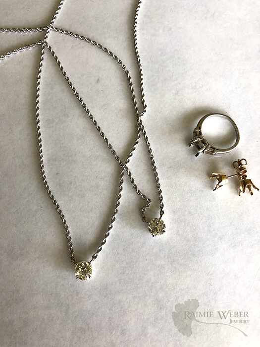 Family jewelry that’s been passed down through generations is incredibly special. And for those whose family stories and histories are difficult to trace, these pieces of jewelry are often some of the only clues to tracing family lineage. These diamonds traveled from Europe, five generations ago, during what was most likely very stressful circumstances. These stones have been in engagement rings, brooches, earrings and, finally, as a solitaire necklace. I have known this grandmother since my teenage years, having babysat her children, one of whom is the father of the women who now have these necklaces for their own. So, in some small way, even I share in this history.