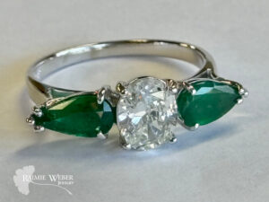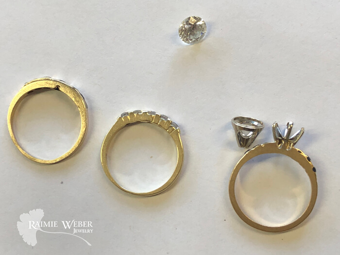 This client was a referral from a longtime customer and friend. She came in to explore what to do with her original wedding set. It was clear from our conversation that she loved the set so I quickly realized that she would be happiest not straying too far from the original design. However, after many decades of wearing her rings they were in need of some TLC. The center setting was barely holding the center diamond. For most of us the important part of our engagement ring is the diamond (or center stone) as was the case in this scenario. She wanted to continue to wear the set daily without any concern of the security of her beautiful center diamond. I suggested a bezel, an update that compliments the way the sapphires and diamonds are set into the bands. She liked the idea of incorporating an outline of metal around the center stone. I liked this bezel because it allows a ton of light into the stone from above as well as from the sides. My other suggestion was to solder the three rings together to help alleviate any additional wear of each ring. Now she has her original wedding set, with a subtle yet functional update so she can continue to wear these beauties for many years to come!