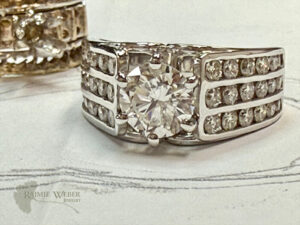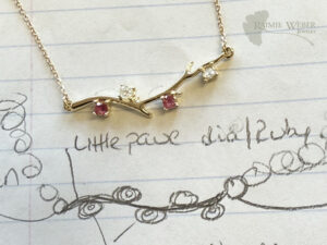 This client did her homework, first reaching out to me online through my website. She compiled a Pinterest board designed with her love’s floral-inspired likes in mind which came in very handy for inspiration. She had a great but uncommon stone choice: moss agate. But interestingly enough, this wasn’t the first engagement ring that I’ve crafted incorporating this beautiful stone. Moss agate is unique in the way that it makes you feel like you’re wearing a piece of greenery in your jewelry. My client found the perfect stone. Once she had it in hand, we made an appointment for her to come into the shop for further exploration. Nature is the theme of this ring, a given. We used the moss agate and accented it with lab grown diamonds in both a marquis and round shape on either side of the agate. She was so very excited and had a beautiful plan to propose while they were vacationing in Italy. A romantic engagement followed by an unforgettable celebration with her family while there. Now that’s amore! Overall such a joyous, heartwarming project that I was so happy to be a part of.