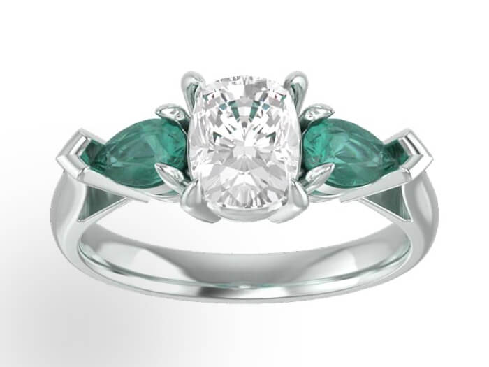- Materials: 14k white gold, teal blue genuine Montana sapphire, lab grown pear shaped diamonds