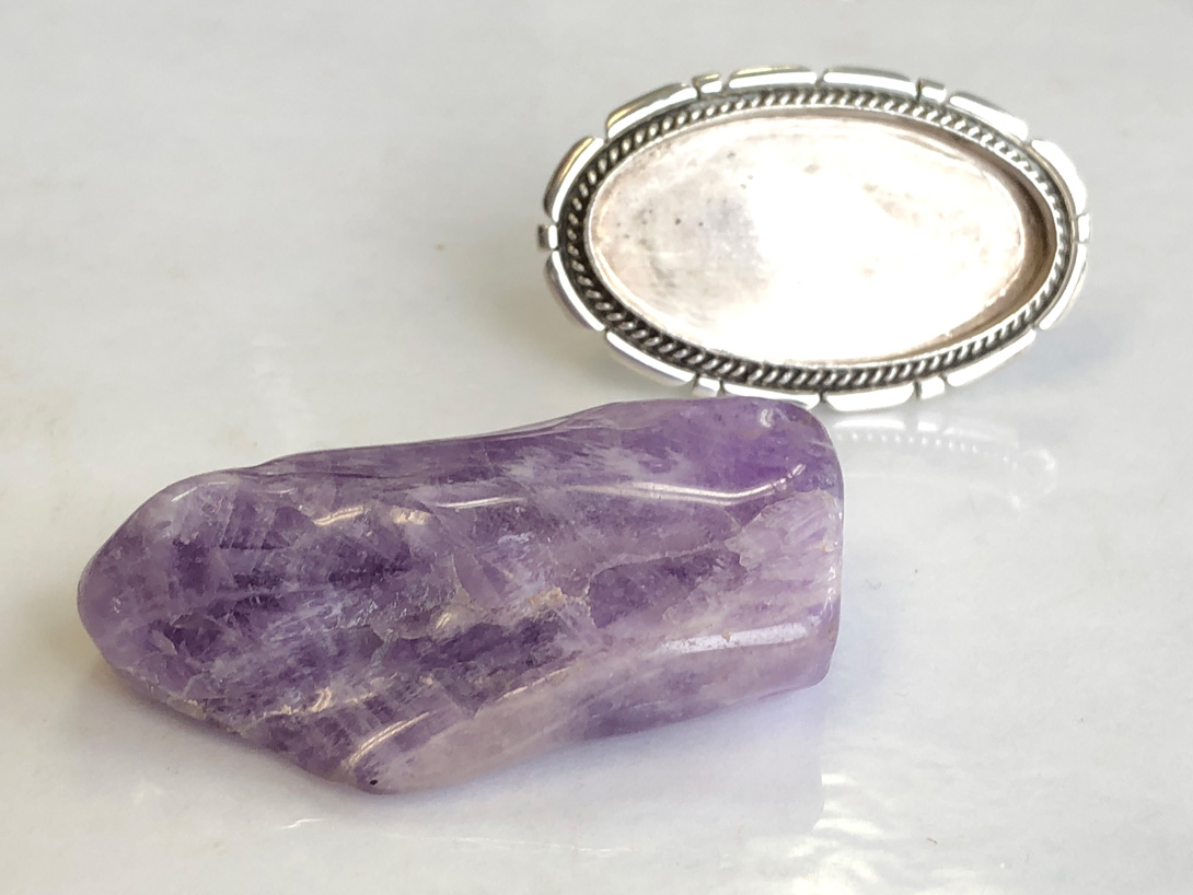 Q: What to do with an empty silver OVERSIZED mounting? What to do with a piece of tumbled amethyst?