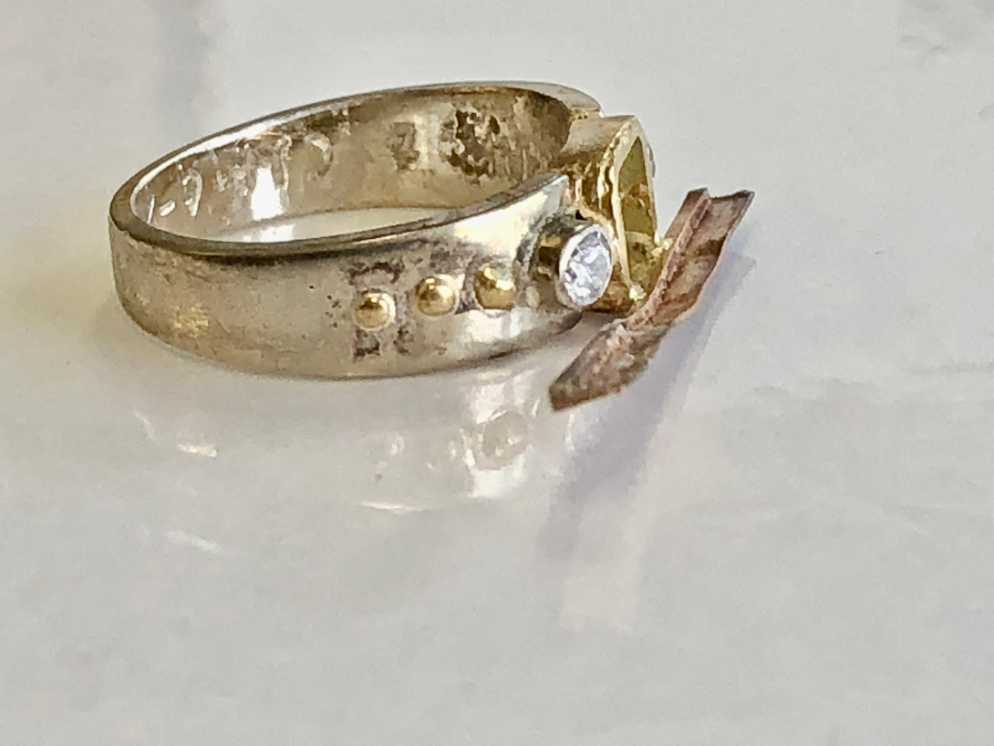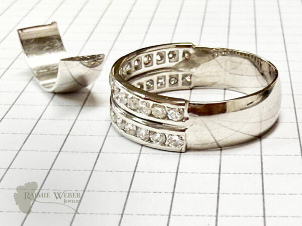 - She wanted to be able to stack this ring with other bands, so remove the yellow gold edges and slightly taper the band as well.
