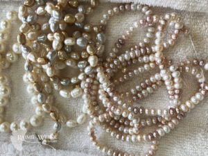 - Materials: Cultured Akoya pearls, single cut natural diamonds, 14k white gold