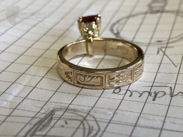 Wow!! Wow, wow, wow!!! This is what I originally envisioned. I was so disappointed that we had to leave the settings as is, but I was disappointed for nothing. The settings don’t even appear stretched anymore. The top and bottom bands tie the design together and it no longer appears unfinished to me. The ring fits comfortably – not tight and not too loose. Maybe now I’ll wear it all the time (when not washing or cleaning) rather than just when I leave the house as I did before. I … Read more