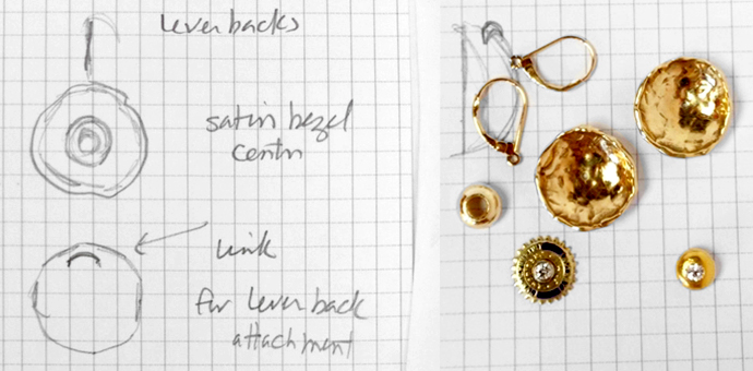 on occasion, i think about bits and pieces of i have in the shop. pictured is a glimpse before assembly and after pictures of the completed earrings. i knew it would come out as something grand!